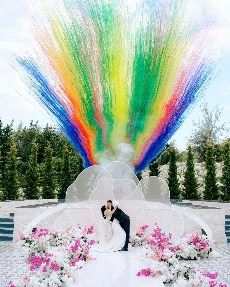 Liberta uma nuvem densa e colorida, criando um efeito espectacular para fotografias, vídeos e para surpreender todos os convidados.